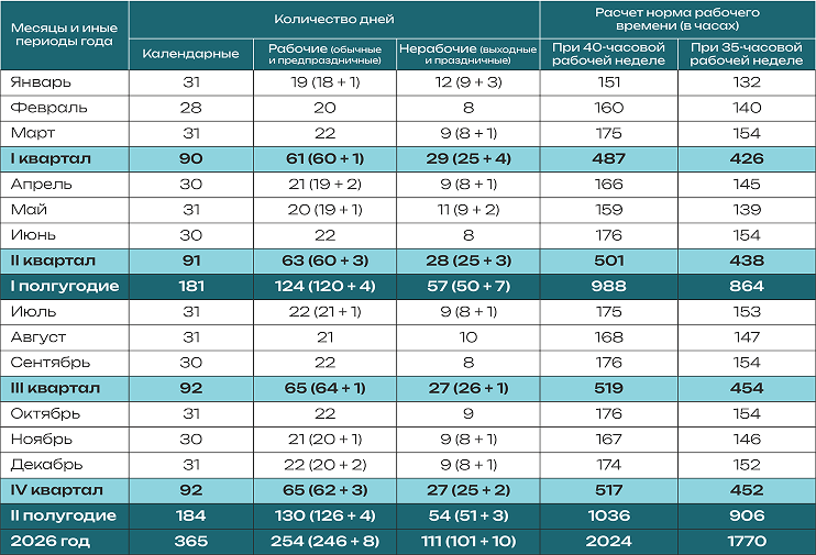 «Производственный календарь – 2026» имеет максимальное информационное наполнение и совершенную электронную форму для быстрого поиска информации.
